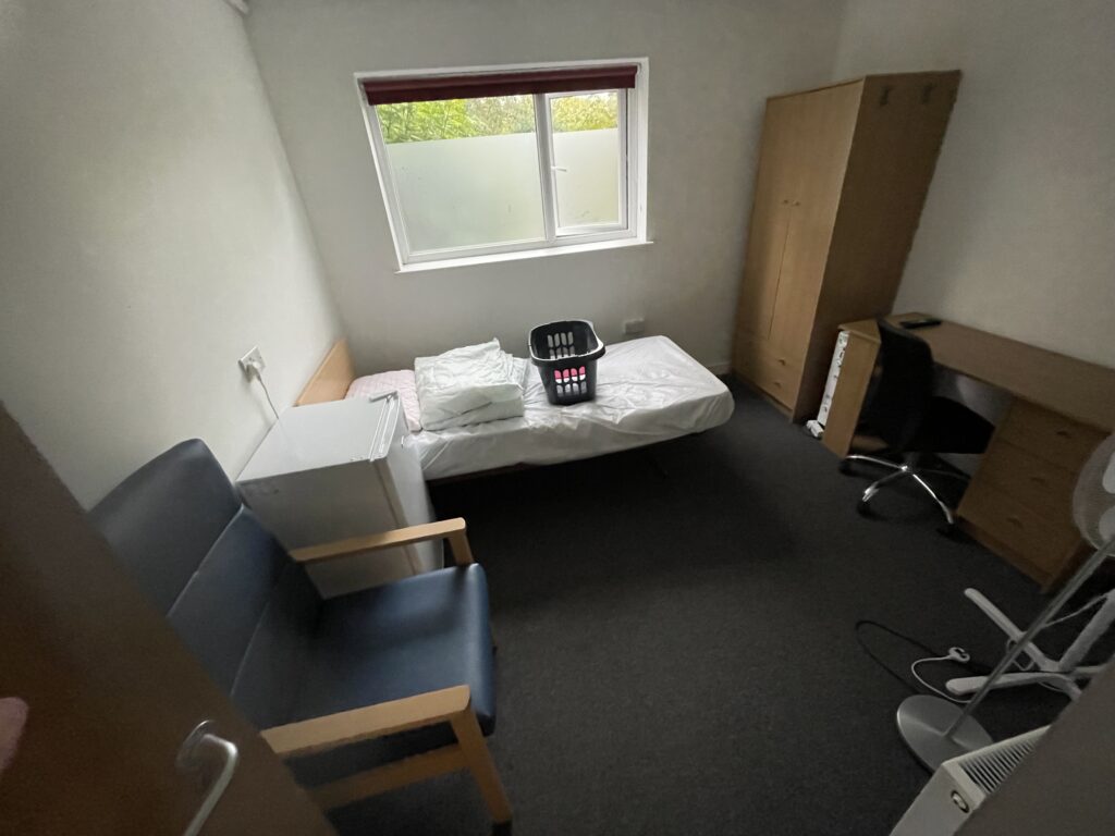 self-catered AP and has a maximum occupancy of 21 men, aged 18 and over. There are nine single and six double occupancy rooms split across three buildings. The AP provides a kitchen facility for residents to prepare their own meals. At the start of our fieldwork, there were 13 residents, but this number fluctuated during the week due to planned departures and new arrivals.