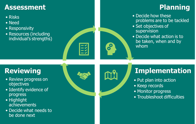 - Assessment is well informed, analytical, and personalised, actively involving the person on probation.