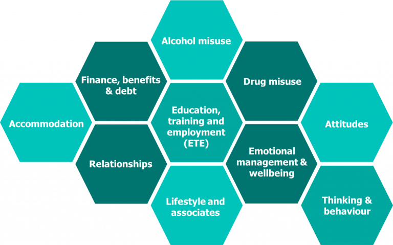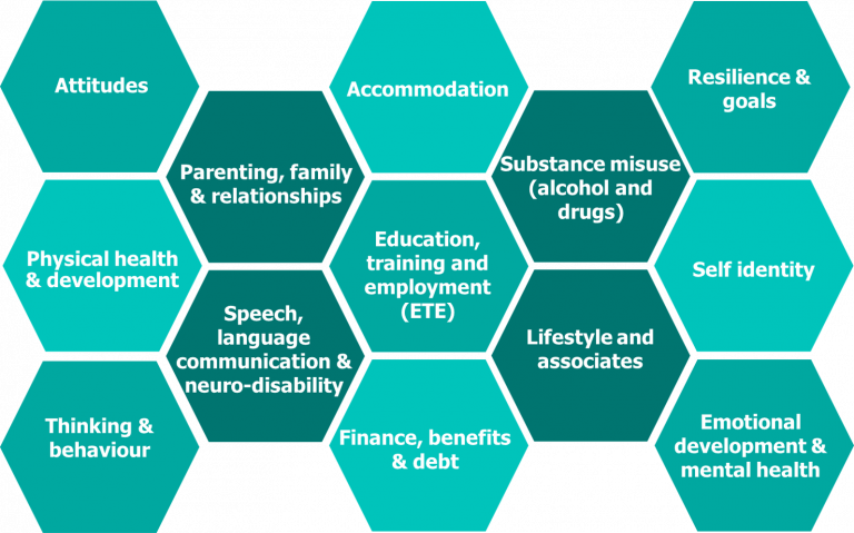 Those in the probation and youth justice services must understand the pathways into offending behaviour and the journey to desistance. We specifically look to see if the assessment, sentence planning, implementation and planning, reviews and evaluations address a range of needs and bolster strengths in the following areas: